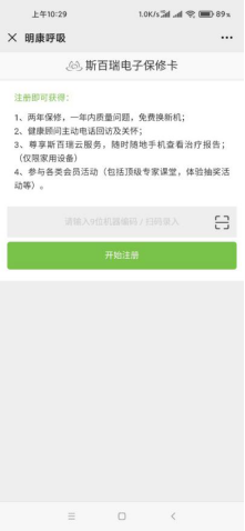 2.然后進(jìn)入電子填寫界面,可以手動(dòng)輸入機(jī)身編碼或者掃一掃機(jī)身上的二維碼,點(diǎn)擊開始注冊(cè);(圖二)
