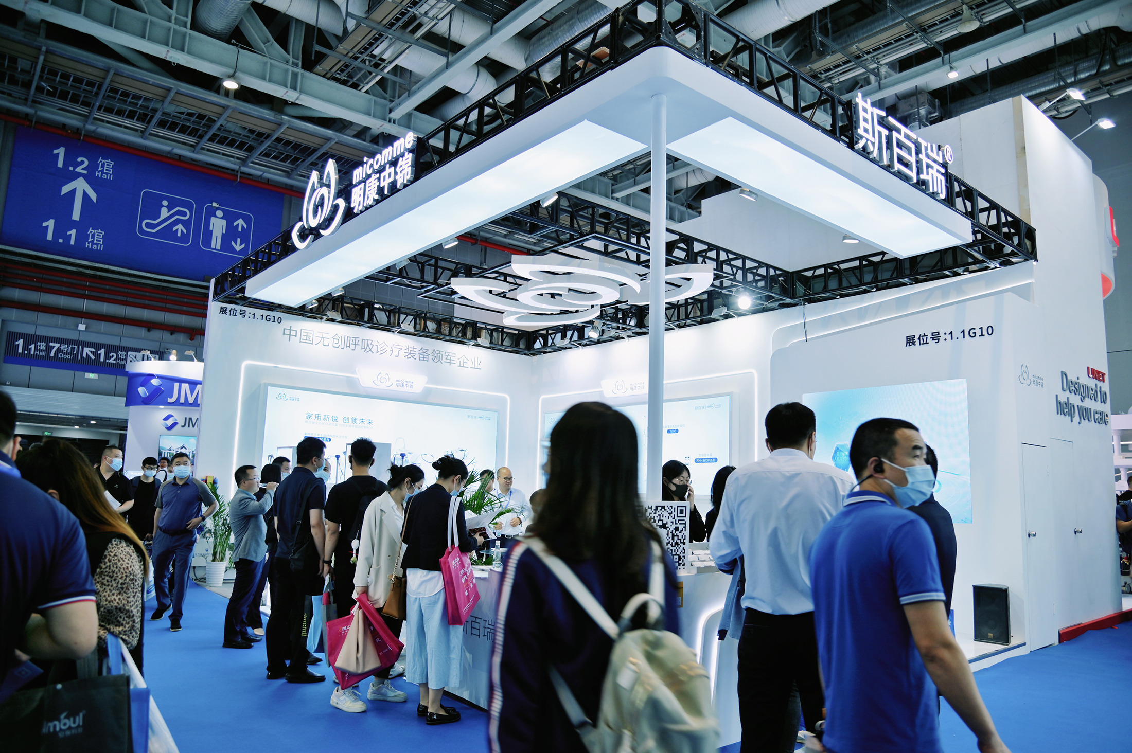 明康中錦展位以“醫(yī)用群星 煥新而至、家用新銳 創(chuàng)領(lǐng)未來”為主題,涵蓋斯百瑞高性能醫(yī)用無創(chuàng)呼吸機(jī)、高流量無創(chuàng)呼吸濕化治療儀、家用無創(chuàng)呼吸機(jī)等產(chǎn)品展示區(qū),直觀展現(xiàn)了斯百瑞高端呼吸診療設(shè)備智能化的全面升級(jí)。