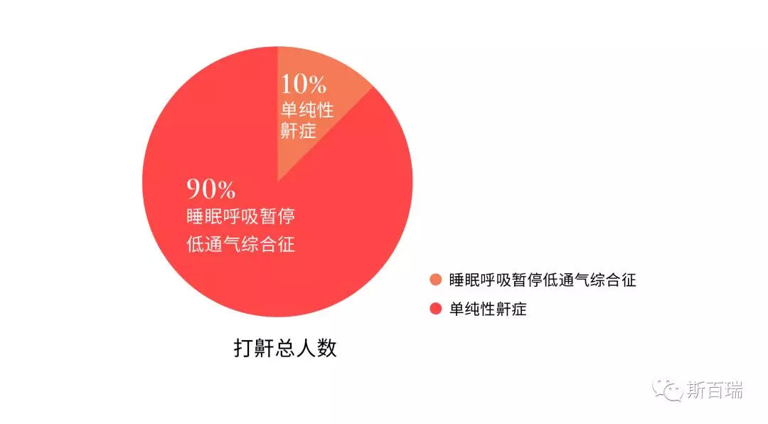 按照國際分類,睡眠障礙有88種疾病,其中65%是睡眠呼吸暫停低通氣綜合征。這個疾病很重要的一個表現(xiàn)就是打鼾,90%的打鼾都屬于睡眠呼吸暫停低通氣綜合征,只有10%是沒有發(fā)生睡眠呼吸暫停的,這類10%的叫單純性鼾癥。但是,這10%的人經(jīng)過時間的推移,還會轉(zhuǎn)換成睡眠呼吸暫停低通氣綜合征。所以,我們往往把打鼾作為睡眠呼吸暫停低通氣綜合征的代名詞。