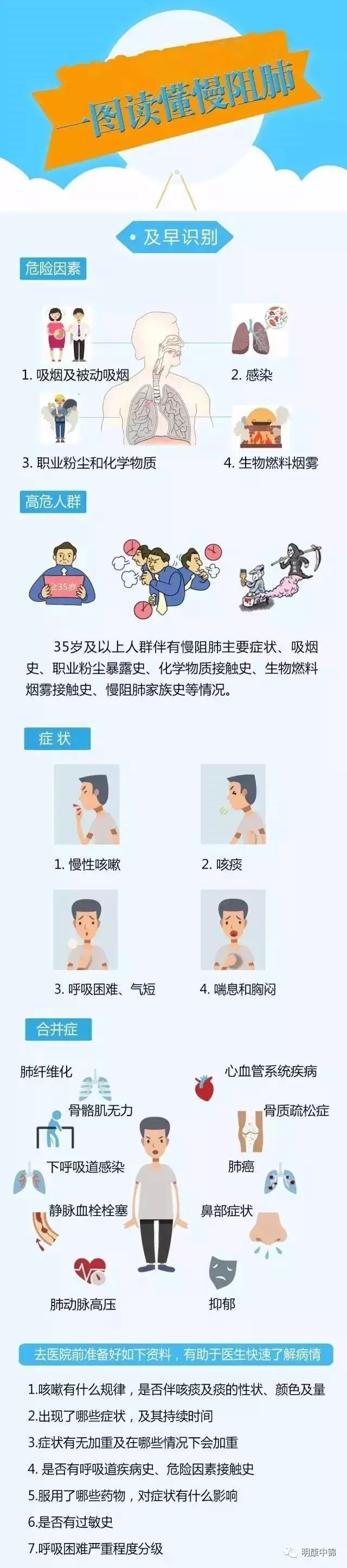 3、慢阻肺早期幾乎沒有癥狀,人們對(duì)疾病警惕性不高,長(zhǎng)期忽略甚至忽視治療,如出現(xiàn)長(zhǎng)時(shí)間咳嗽、氣短必須及時(shí)就醫(yī)。