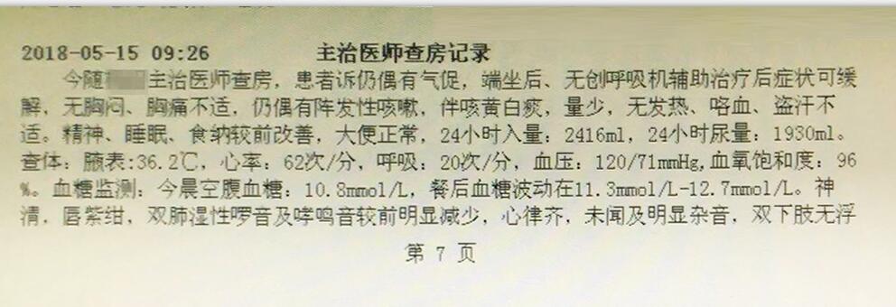 使用斯百瑞無(wú)創(chuàng)呼吸機(jī)有效后主治醫(yī)生查房病志: