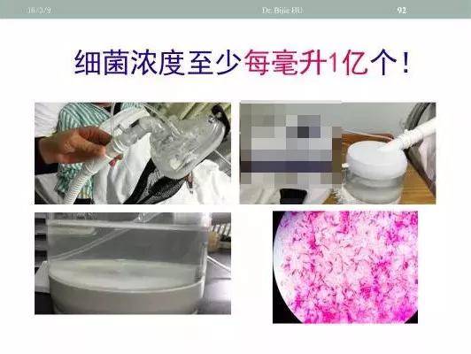 上海中山醫(yī)院感染病科胡必杰教授分享于SIFIC論壇的文章《家用呼吸機(jī)不消毒,吸入的霧化氣體可能引發(fā)致命性肺炎!》中提到從微生物層面進(jìn)行分析和調(diào)查得出在2個(gè)月未進(jìn)行消毒霧化罐的水細(xì)菌污染量,至少每毫升1億條細(xì)菌??!